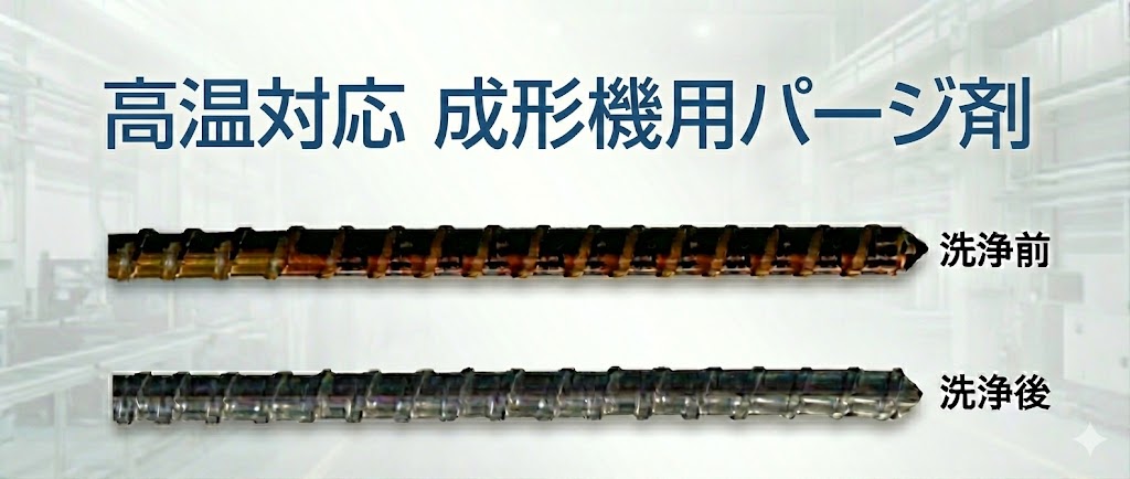 ・400°C近い高温環境でも煙や臭いの発生が非常に少ない ・成形時の温度のまま投入でき、すぐに排出可能なため待ち時間がほぼゼロ ・ガラス繊維等の無機フィラー配合による強力な洗浄力 |