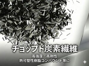 当製品は、高品質なPAN系炭素繊維を特定の長さに切断し、独自の表面処理(サイジング処理)を施した材料です。 主に熱可塑性樹脂とのコンパウンド(混練)に使用され、成形品の軽量化、高強度化、寸法安定性の向
