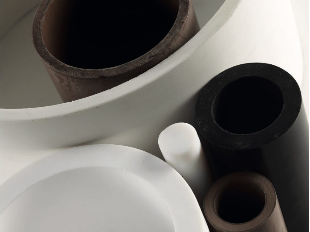 当社では、PTFEやPFAなどのフッ素樹脂、PEEK、ポリイミドといった高機能樹脂の切削加工用母材(ストックシェイプ)をご紹介しています。